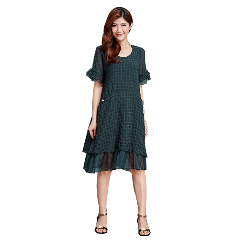Kopen Goedkoop Plus size vrouwen kleding 2018 zomer 5XL 6XL Losse vrouwen Jurk grote maten Casual korte Mouw Dress office lady solid kanten jurk Prijs