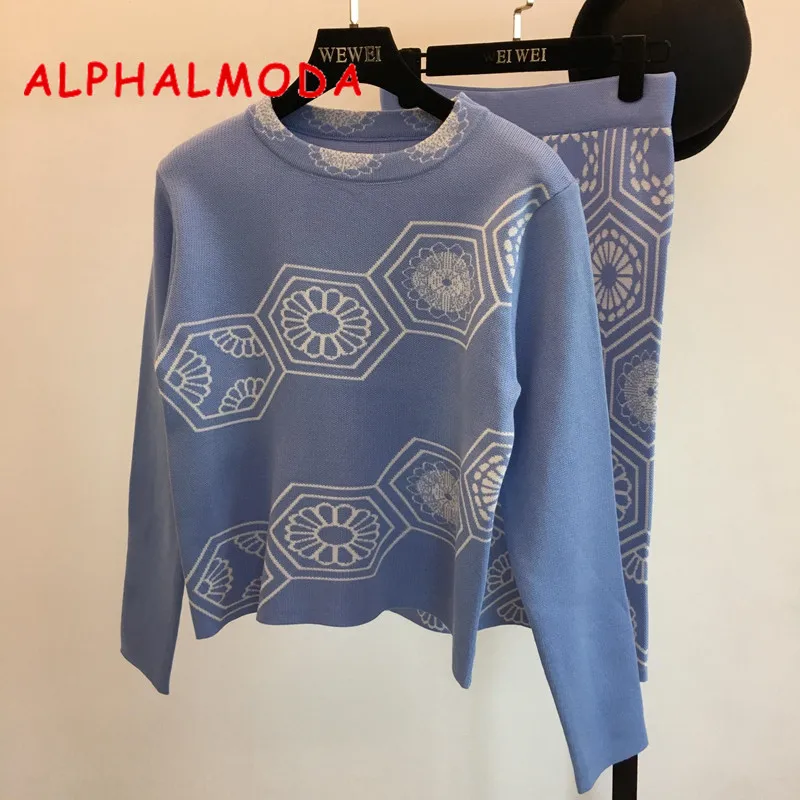 Kopen Goedkoop ALPHALMODA 2018 Herfst Winter Trend Geometrische Gebreide Trui + Rok 2 stks Suits Vrouwen Office Casual Breien Outfit Online